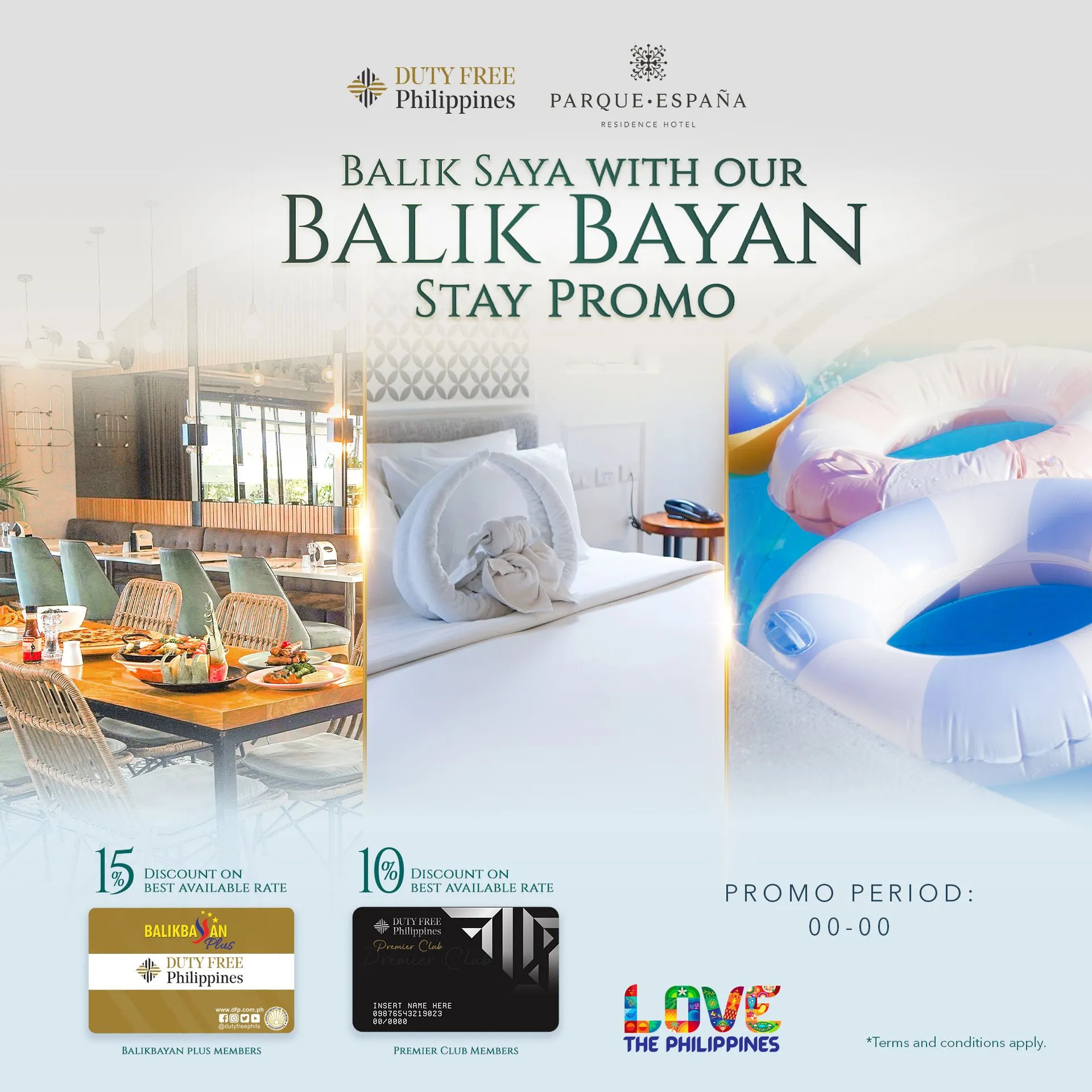 ![]() | 𝐀 𝐍𝐞𝐰 𝐂𝐡𝐚𝐩𝐭𝐞𝐫 𝐁𝐞𝐠𝐢𝐧𝐬: 𝐏𝐚𝐫𝐪𝐮𝐞 𝐄𝐬𝐩𝐚ñ𝐚 𝐚𝐧𝐝 𝐃𝐮𝐭𝐲 𝐅𝐫𝐞𝐞 𝐏𝐡𝐢𝐥𝐢𝐩𝐩𝐢𝐧𝐞𝐬 𝐄𝐧𝐭𝐞𝐫 𝐒𝐭𝐫𝐚𝐭𝐞𝐠𝐢𝐜 𝐀𝐠𝐫𝐞𝐞𝐦𝐞𝐧𝐭 𝐭𝐨 𝐄𝐧𝐡𝐚𝐧𝐜𝐞 𝐇𝐨𝐬𝐩𝐢𝐭𝐚𝐥𝐢𝐭𝐲 𝐒𝐞𝐫𝐯𝐢𝐜𝐞𝐬.The beginning of a dynamic partnership between Parque España Residence Hotel and Duty Free Philippines. Built on mutual trust and aligned goals, this collaboration promises to enhance guest experiences and unlock new opportunities. We’re excited for the journey ahead and the success it will bring. Balikbayan Plus members are entitled to a 15% discount while Premier Club members may enjoy a 10% discount based on the best available rate upon booking. This exclusive benefit will be valid from October 17, 2025 to October 16, 2026, giving BBPC and Premier Club members an entire year to enjoy Parque España Residence Hotel's special offerings to DFPC's loyalty programs. |