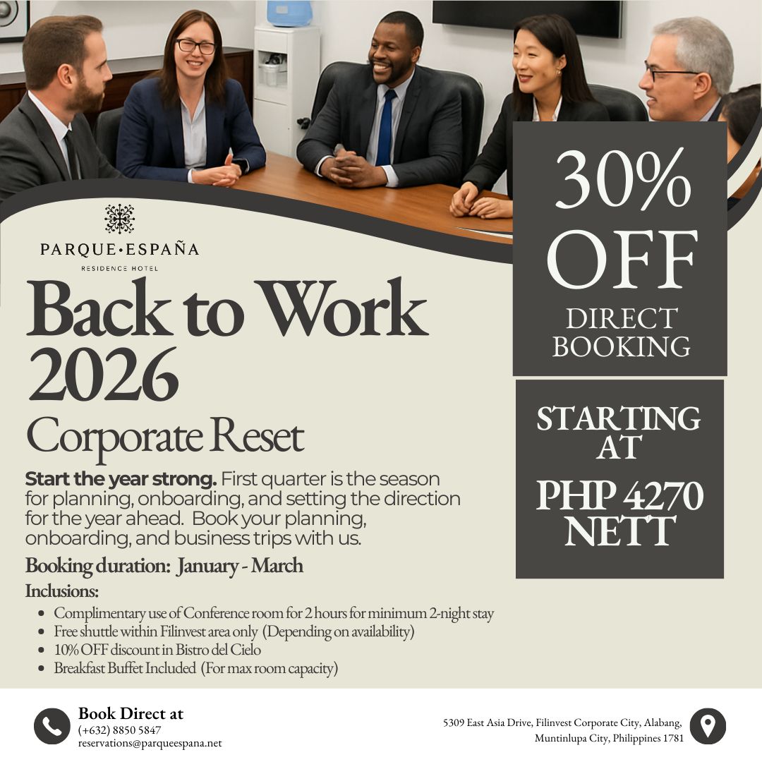 Back to Work 2026Start the year strong. First quarter is the season for planning, onboarding, and setting the direction for the year ahead.Book your planning, onboarding, and business trips with us. Inclusions: